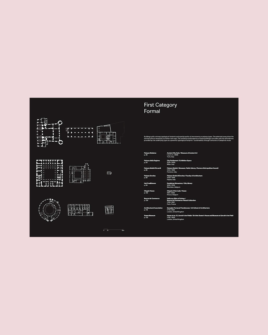 Architectural Affordances - Typologies of Umbau is a collection of drawings that trace transformations in thirty buildings over time. Organized into three categories based on time-periods and life cycles – centuries, over one hundred years, and less than a hundred years –, the atlas gathers consistent floor plans, sections, and elevations that facilitate the study of Umbau as major and minor transformations of buildings alongside yellow-red plans. These transformation, extension and redevelopment projects were compiled through a call for papers and drawn and assembled by international architects from both practice and academia. The resulting atlas not only depicts changes in the material composition but also presents the mediation of forms and functions as a temporally and socially conditioned appropriation of affordances offered by built spatial arrangements.